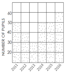 The following bar graph shows the number of pupils in class 5 from 2011 - 2016. Study it carefully and answer the questions after it.