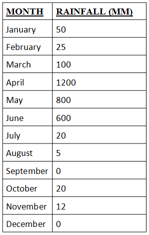 THE FOLLOWING TABLE SHOWS THE ANNUL RAINFALL FOR THE YEAR 2016.